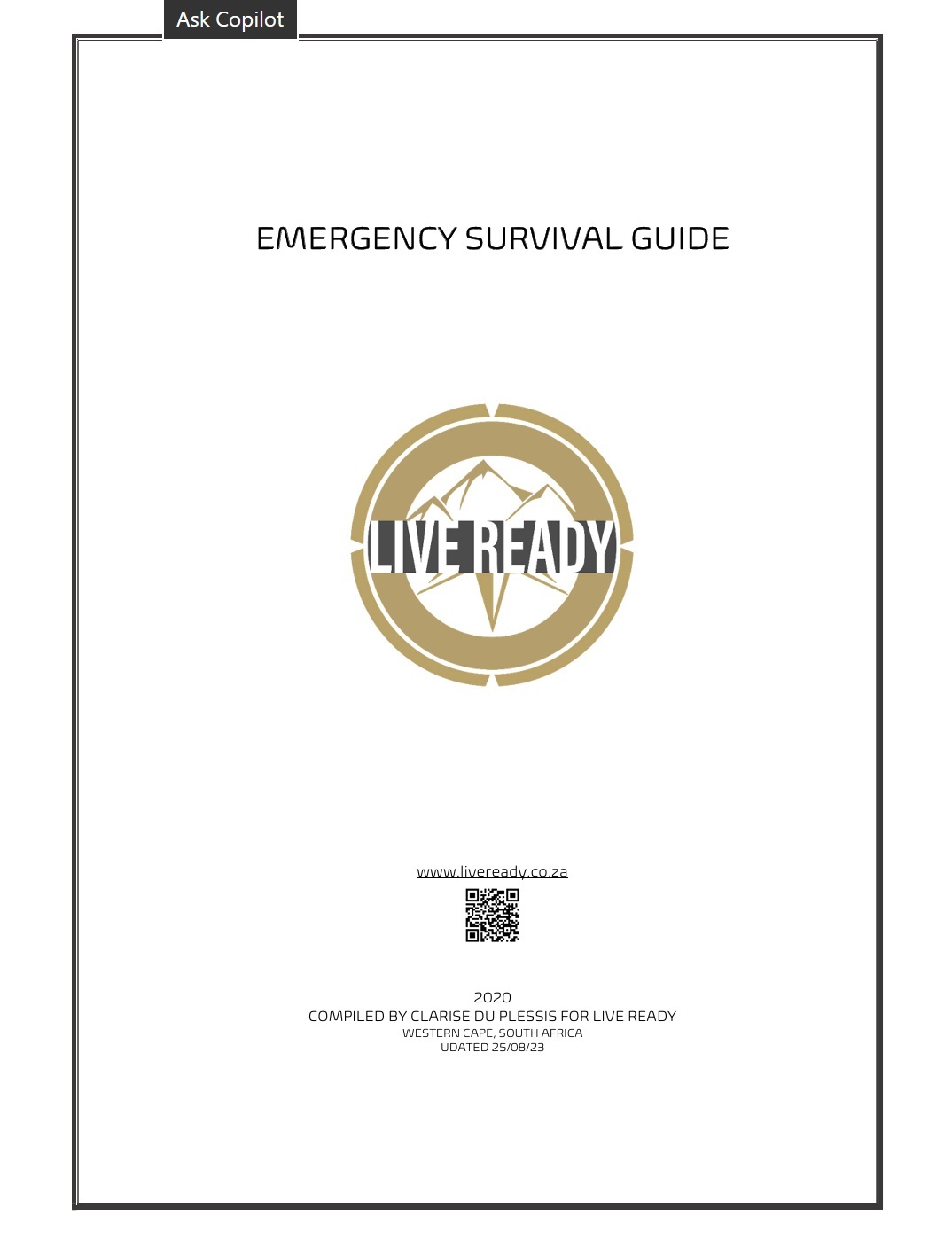 Get started right away with the Live Ready Emergency Survival Guide. This guide is complementary and we hope that you and your loved ones will find plenty of value in the information therein. Use it as a packing list for your bug out bag, some campfire reading or even to prepare your crew for survival egress.